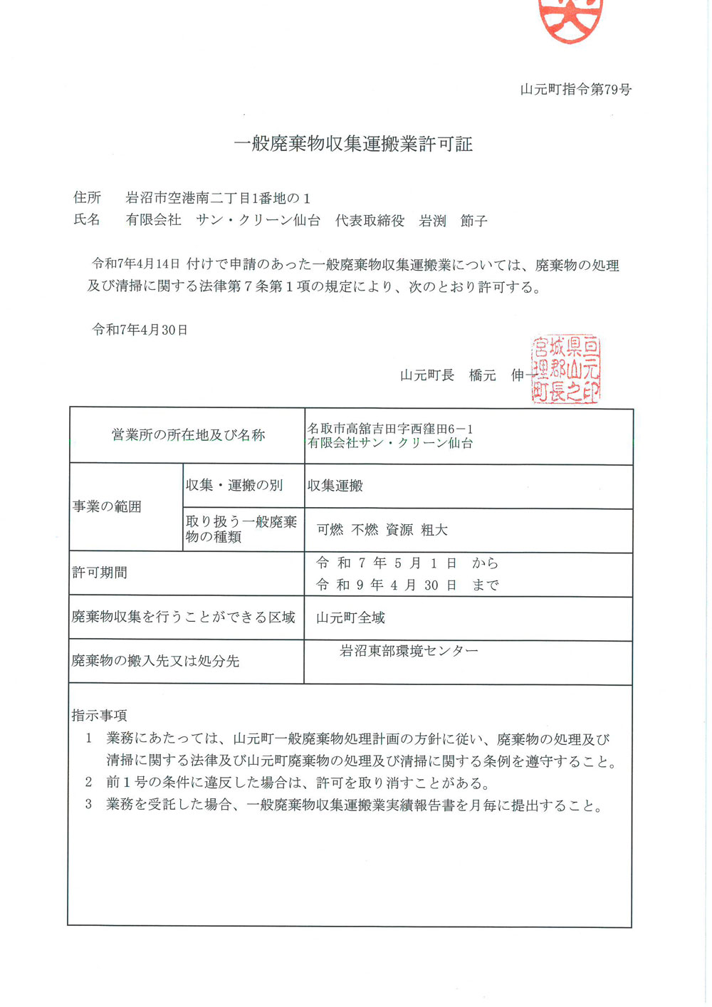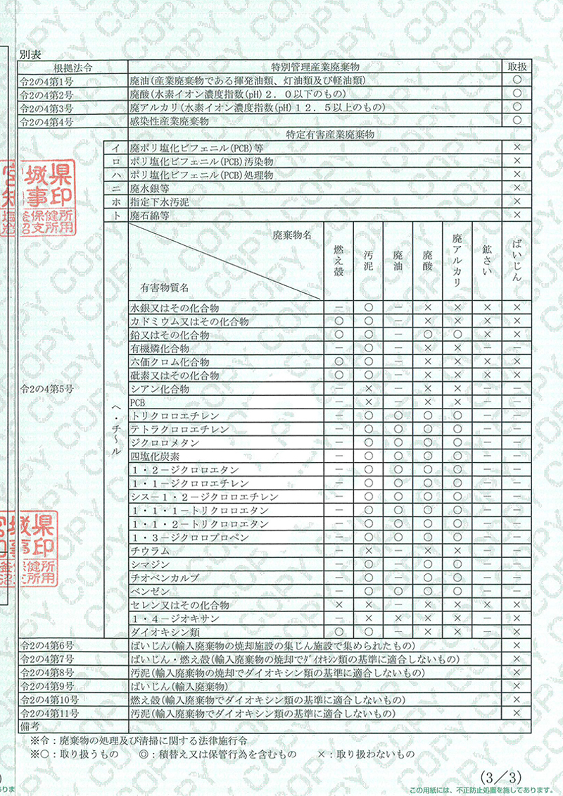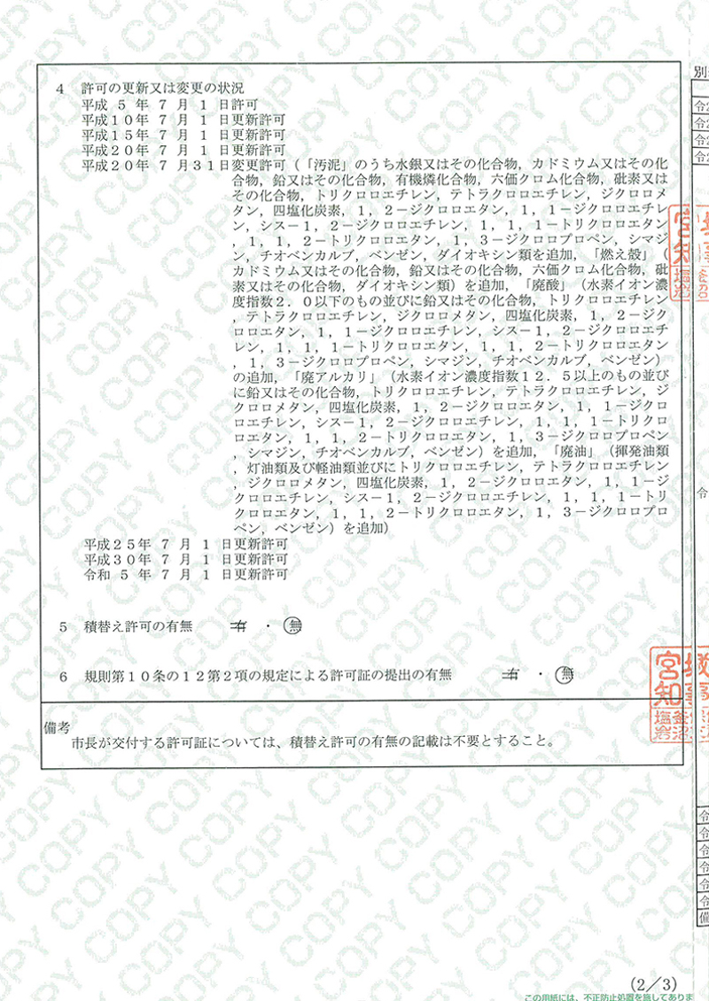 | 平成3年 3月 | 産業廃棄物(収集運搬)宮城県新規 |