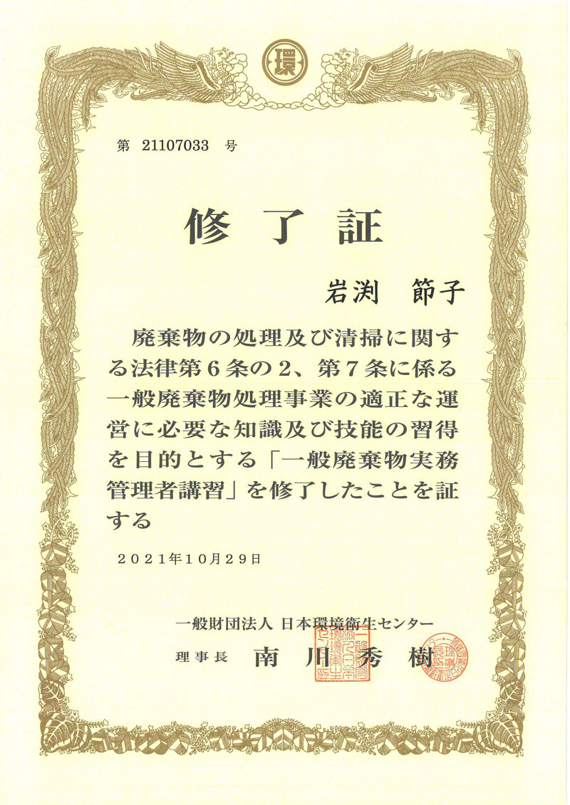 | 事業内容 | 産業廃棄物収集運搬業、特別管理産業廃棄物収集運搬業、一般廃棄物収集運搬業、古物商、遺品整理業、各種業務の請負業 |