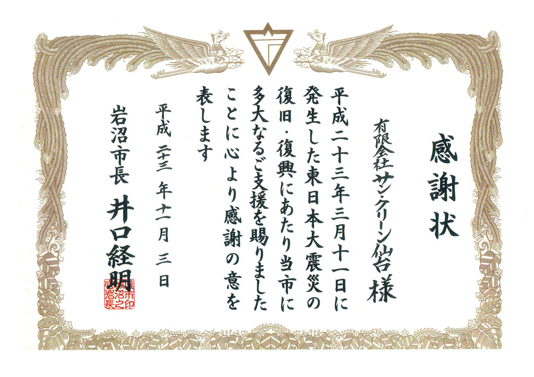| 平成15年 5月 | 有限会社サン・クリーン仙台に社名変更 |